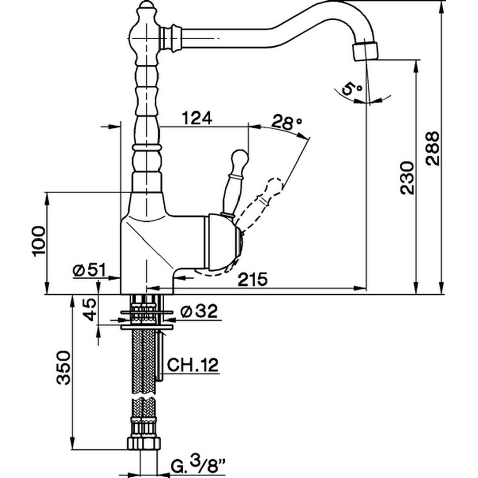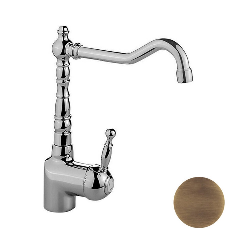 Смеситель Cisal Arcana Royal Kitchen AY00253027 однорычажный на 1 отверстие для кухни, с поворотным изливом 215 мм, цвет бронза
