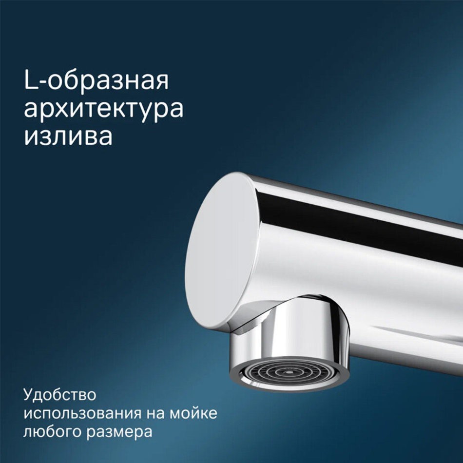 Максимальный комфорт: плавное вращение излива обеспечивает непревзойденное удовольствие от использования и удобство в работе на кухне.