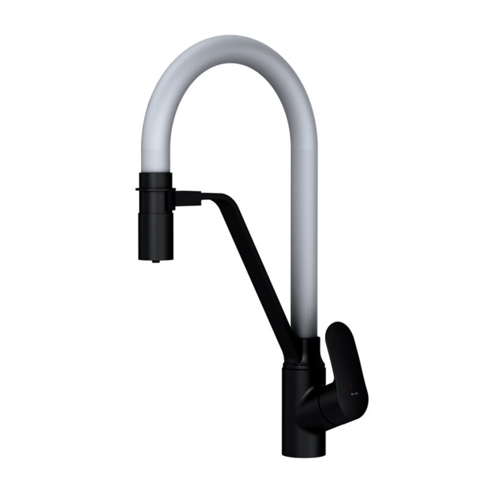Смеситель для кухни Am.Pm Like с каналом для питьевой воды и гибким изливом, черный, излив серый, F8007825