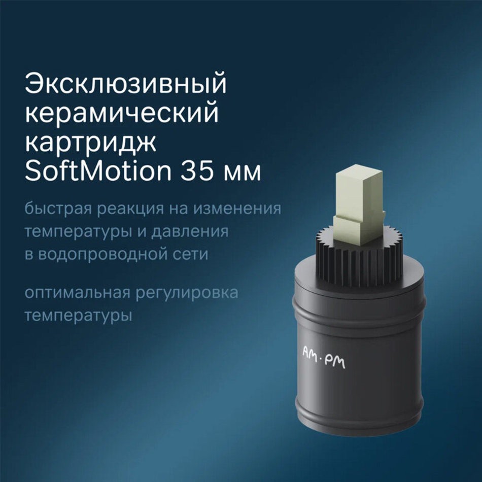 Эксклюзивная разработка для АМ.РМ: специально спроектированный керамический картридж SoftMotion 35 мм обеспечивает низкий уровень шума, выдерживает любые перепады давления в водопроводной сети