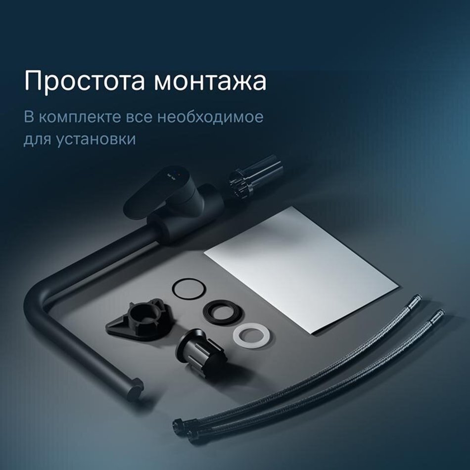 L-образная архитектура излива позволит разместить смеситель на мойке любого размера и даже под низкими шкафчиками при полном сохранении функционала и комфорта в использовании.