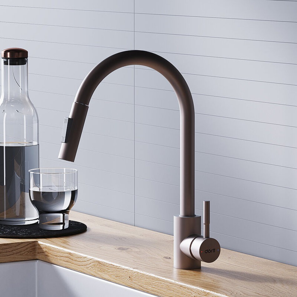 Смеситель для кухни Dorff Logic, с выдвижным изливом, сатин матовый, D3007511