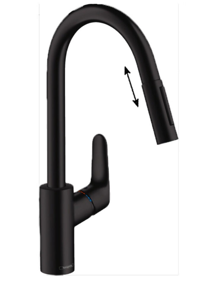 Смеситель для кухни Hansgrohe Focus 31815670 выдвижной излив, черный матовый