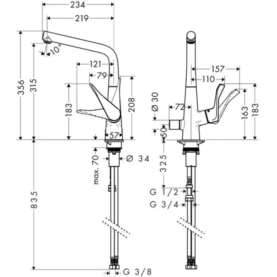 Смеситель для кухни Hansgrohe Metris 14888000 320, хром