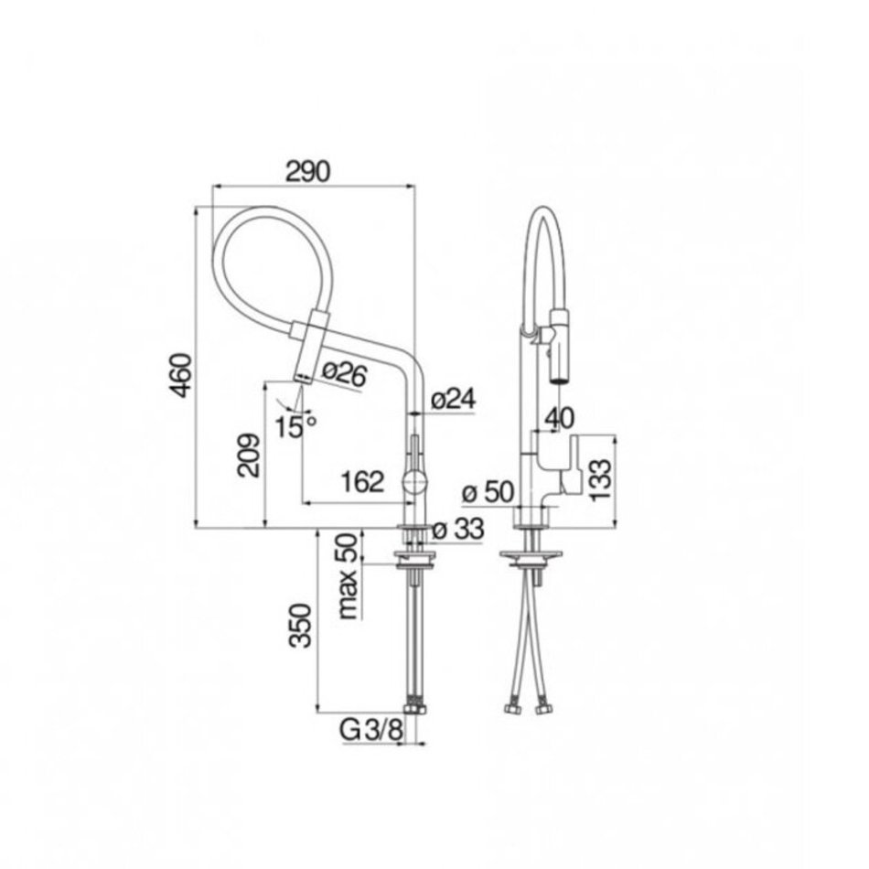 Смеситель для кухни Nobili Lamp, с выдвижным изливом, цвет хром/черный, MP119400CR