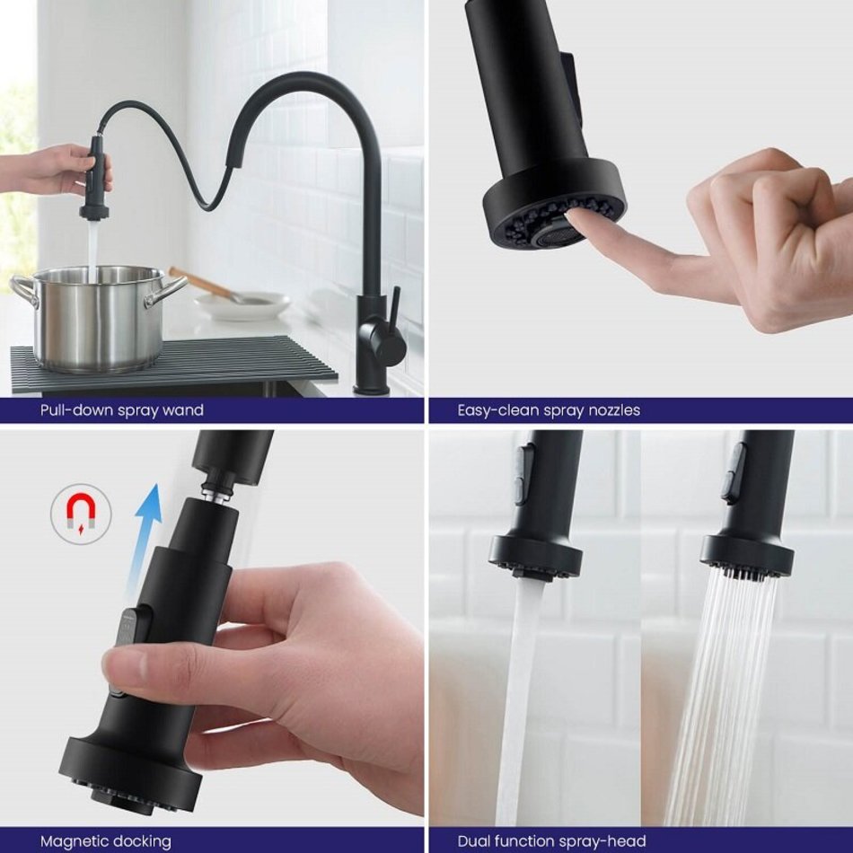 Смеситель для кухни Timo Saona 2316/03FL с выдвижным изливом, чёрный матовый