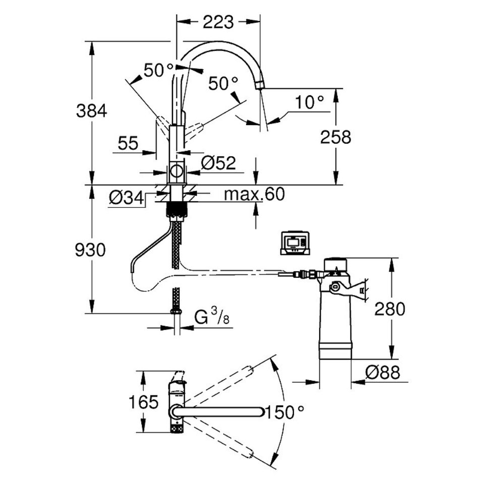 - GROHE Blue Смеситель однорычажный для мойки с функцией очистки водопроводной воды.