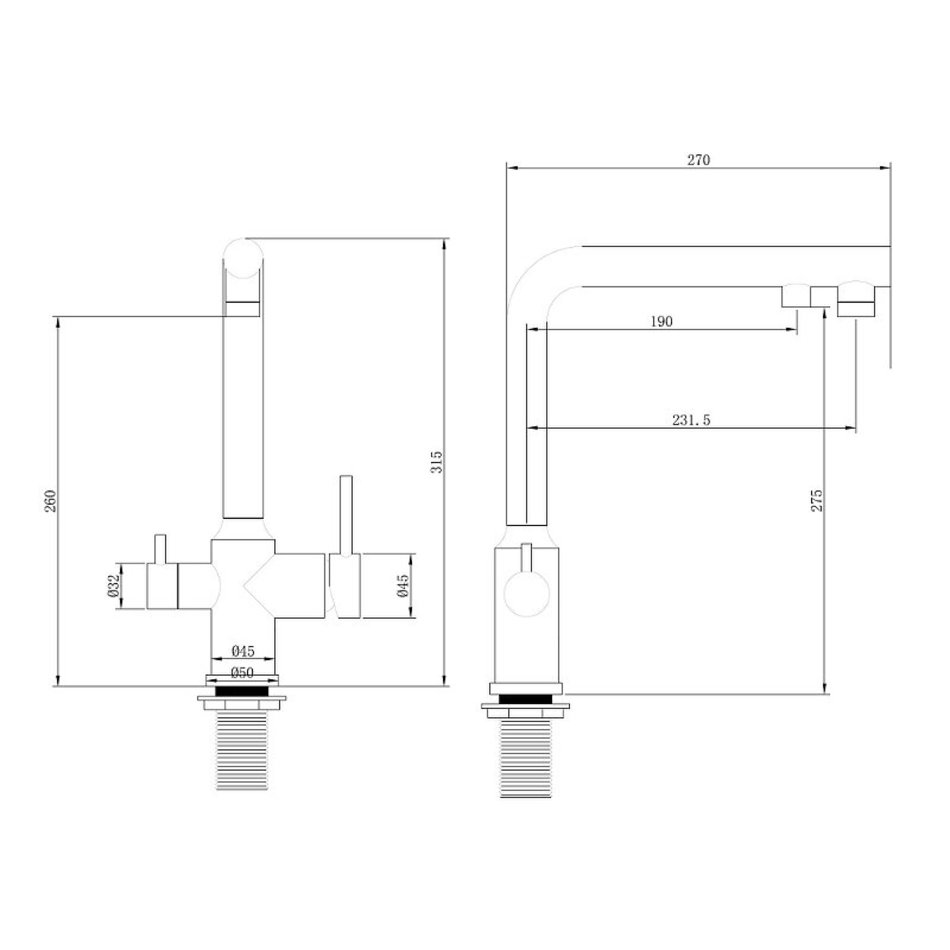 - Излив: поворотный, выдвижной с каналом для питьевой воды.