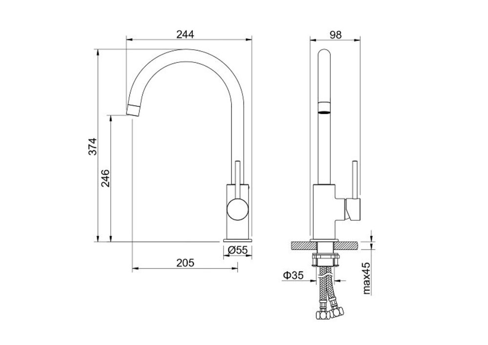 Комплектация: смеситель, гибкая подводка 60см, монтажный комплект. Слив-перелив и донный клапан приобретаются отдельно.