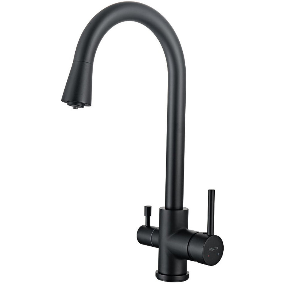 Смеситель для кухонной мойки Aquatek с подключением к фильтру, цвет черный матовый, AQ1085MB