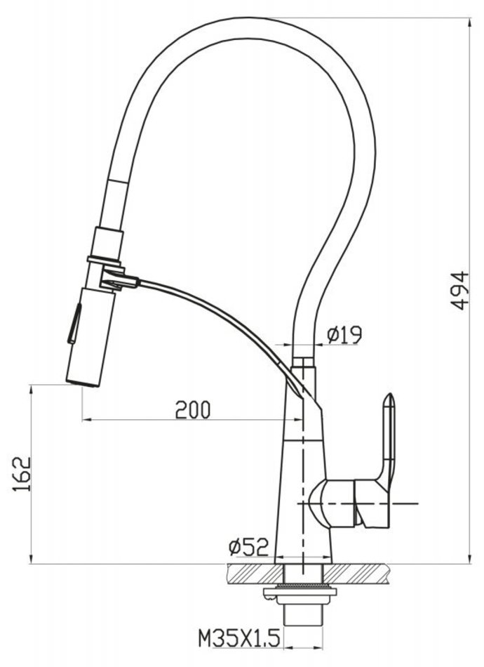 - оснащение: без донного клапана, гибкий излив с переключателем аэратор/душевая струя