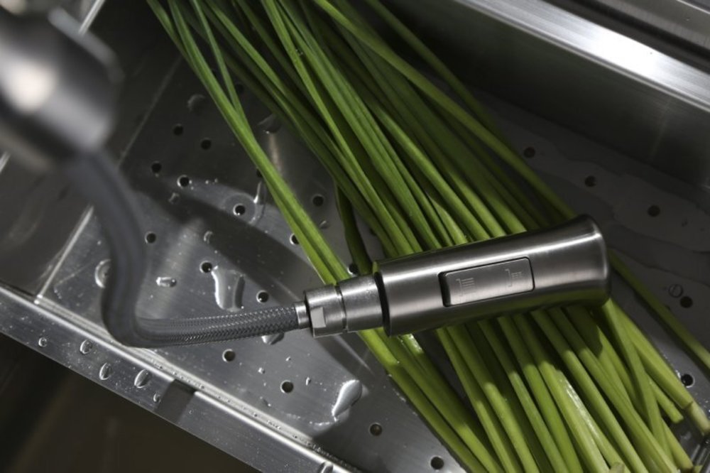 - оснащение: без донного клапана, гибкий излив с переключателем аэратор/душевая струя