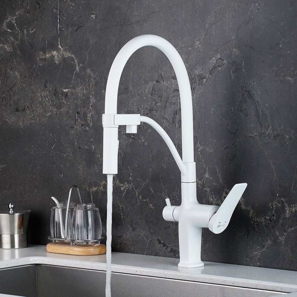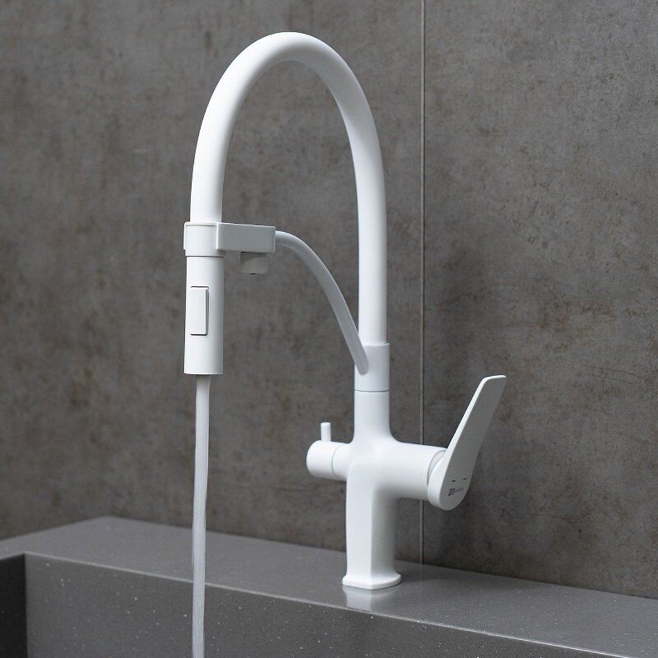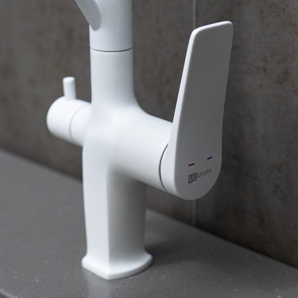 Смеситель для кухонной мойки Lemark Bronx LM3761MW, с подключением к фильтру, белый матовый