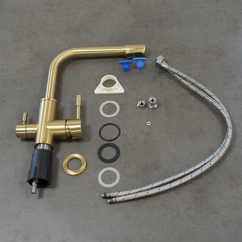 Смеситель для кухонной мойки Lemark Expert LM5061LGN, с подключением к фильтру с питьевой водой, золото светлое