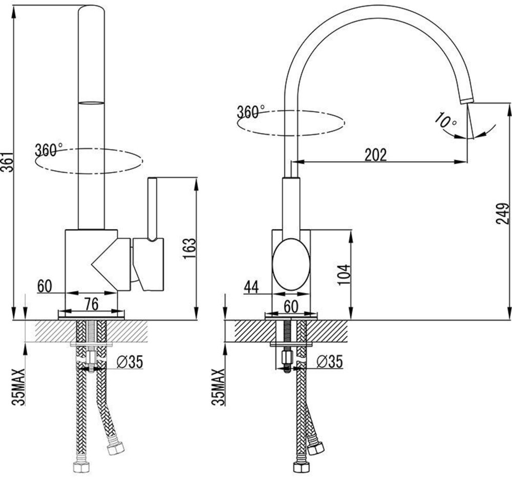 Смеситель имеет простой, современный дизайн, который подходит для всех стилей ванных комнат. Устанавливается на умывальник и кухонную мойку.