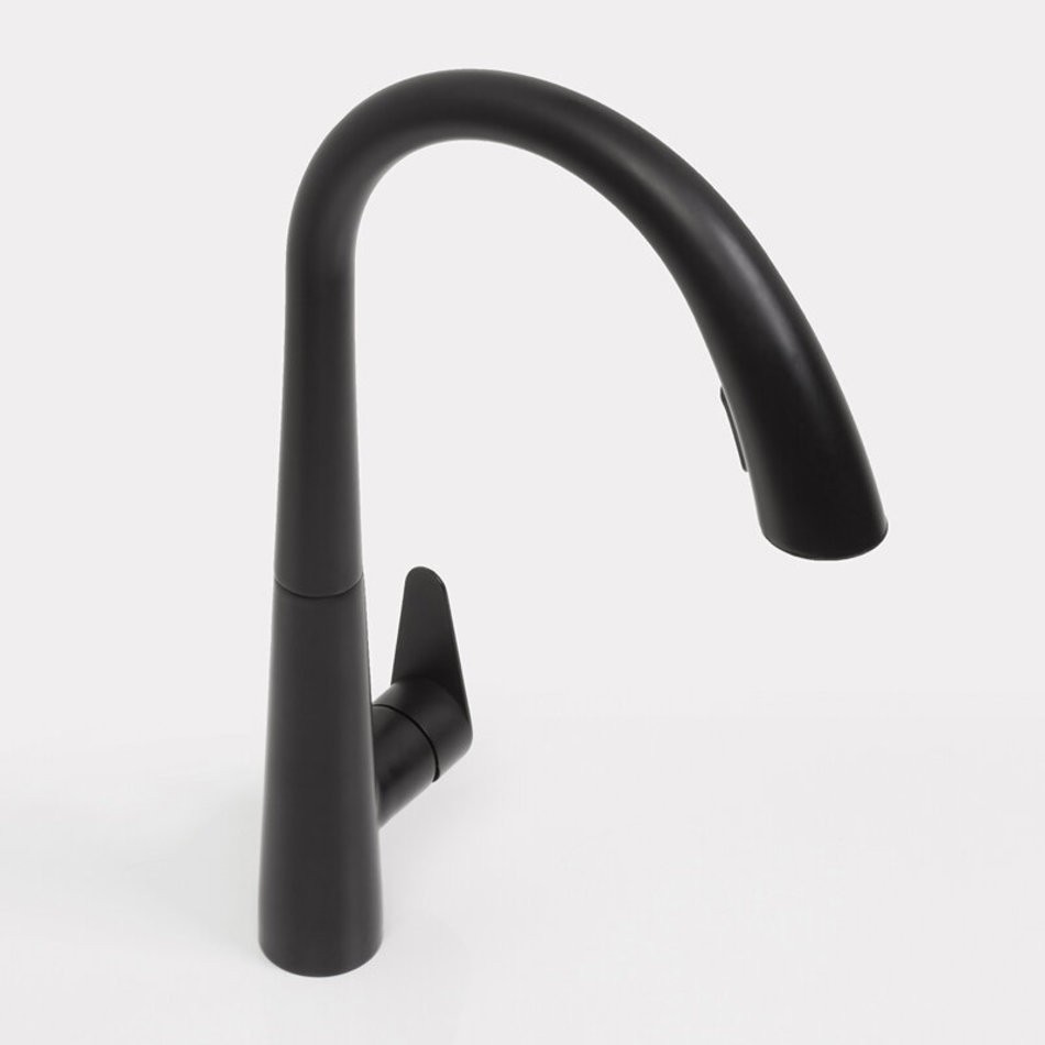 Смеситель для кухонной мойки WasserKRAFT, с выдвижной лейкой, черный, A8667