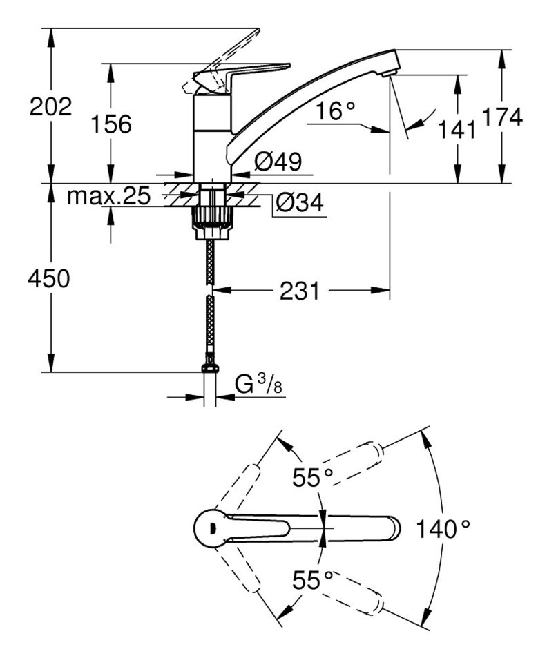 Смеситель Grohe BauEco 31680000 для кухонной мойки, низкий излив