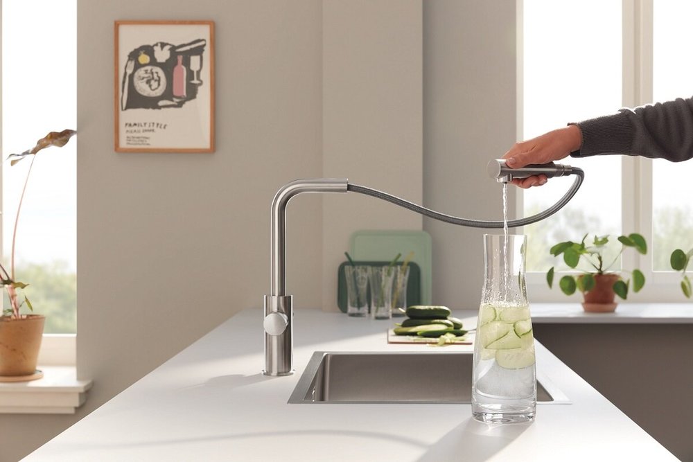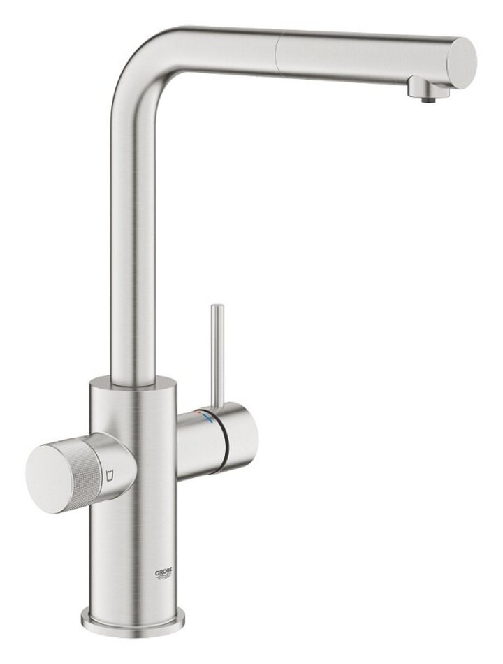 Смеситель Grohe Blue Pure Minta, 30590DC0, для кухонной мойки, с подключением к фильтру с питьевой водой, выдвижной излив, цвет суперсталь