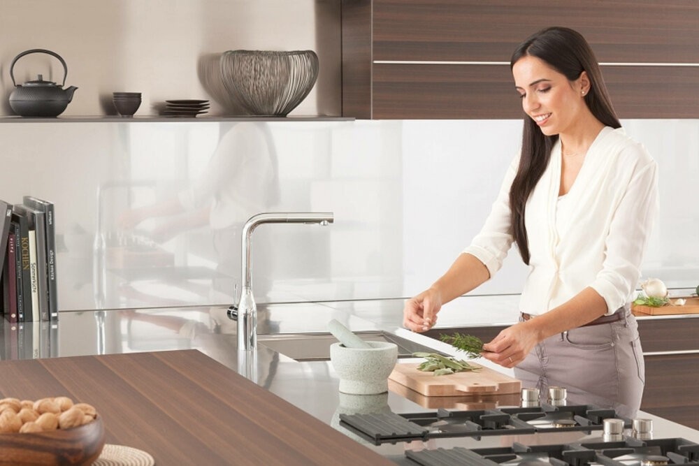 - GROHE EasyDock Легкое вытягивание и возврат на место выдвижного излив.