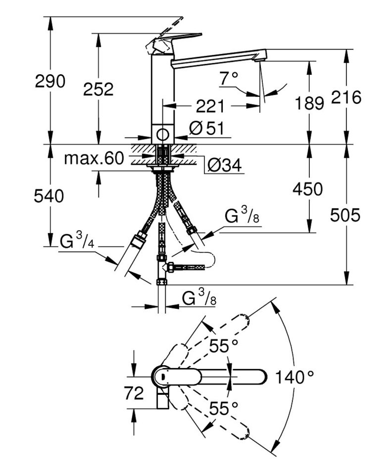 Смеситель Grohe Eurosmart Cosmopolitan (Евросмарт Космополитан) 30195000 для кухни