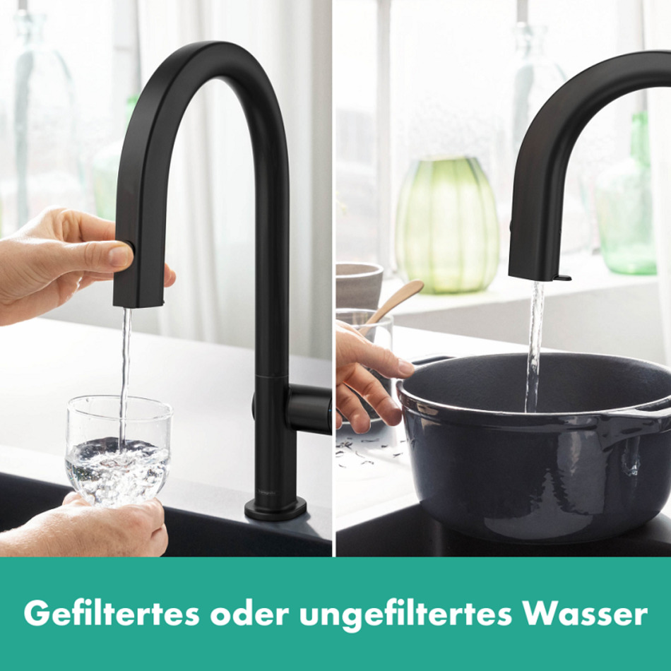 Смеситель Hansgrohe Aqittura, 76801670, для кухонной мойки, с функцией фильтрации и минерализации, черный матовый