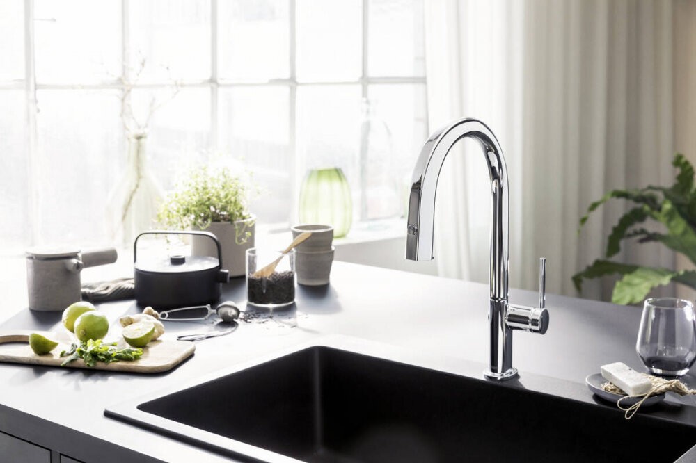 Смеситель Hansgrohe Aqittura M91 для кухонной мойки, с вытяжным изливом, с подключением к фильтру, хром, 76803000