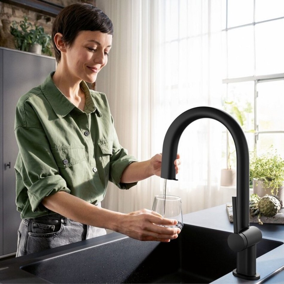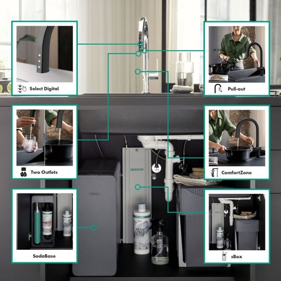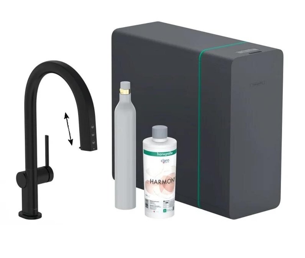 Смеситель Hansgrohe Aqittura SodaSystem, 76806670, для кухонной мойки, системой фильтрации и газирования воды, черный матовый
