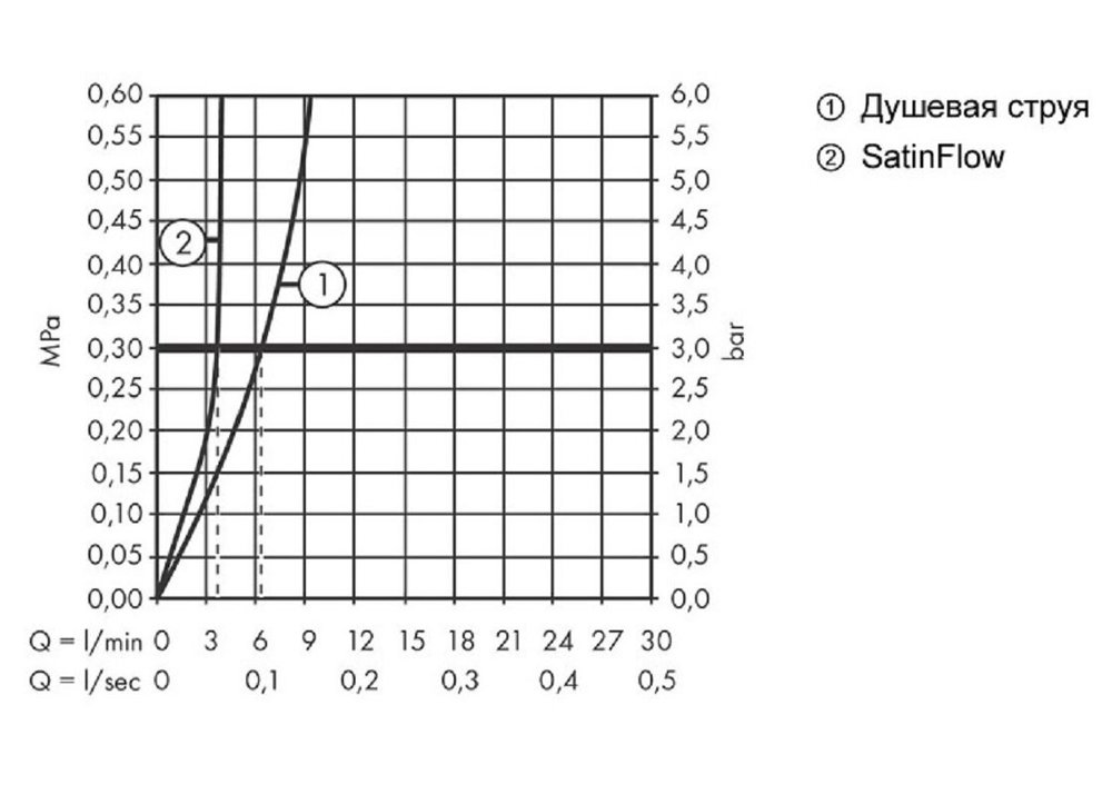 - Переключение струи SatinFlow на струю из излива осуществляется нажатием кнопки