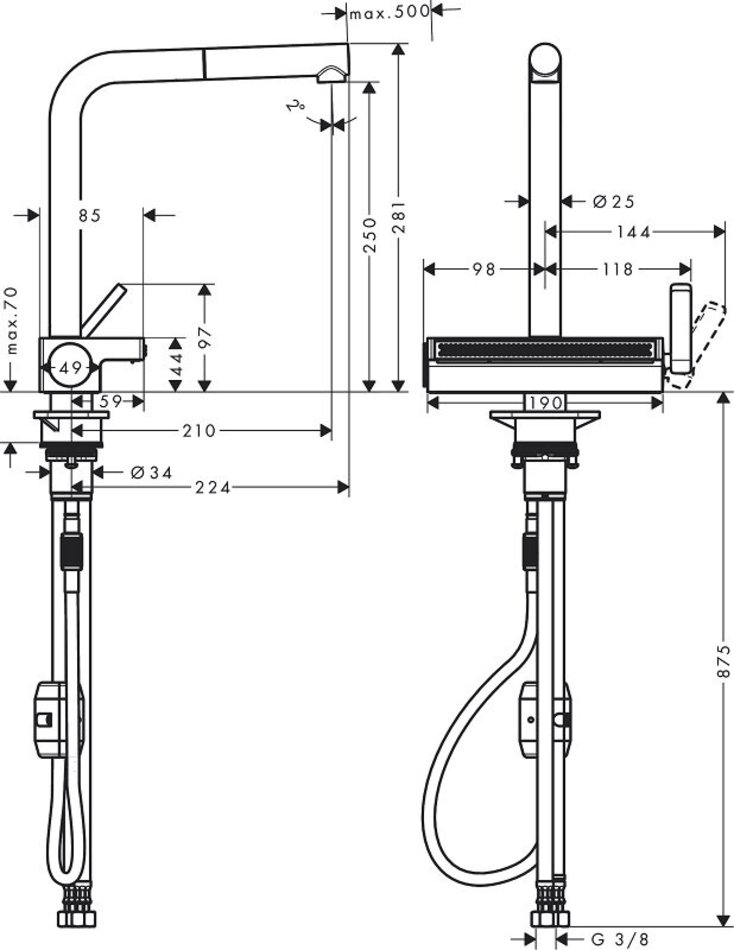 Смеситель Hansgrohe Aquno Select 73836670, для кухонной мойки, с вытяжным изливом, цвет черный матовый