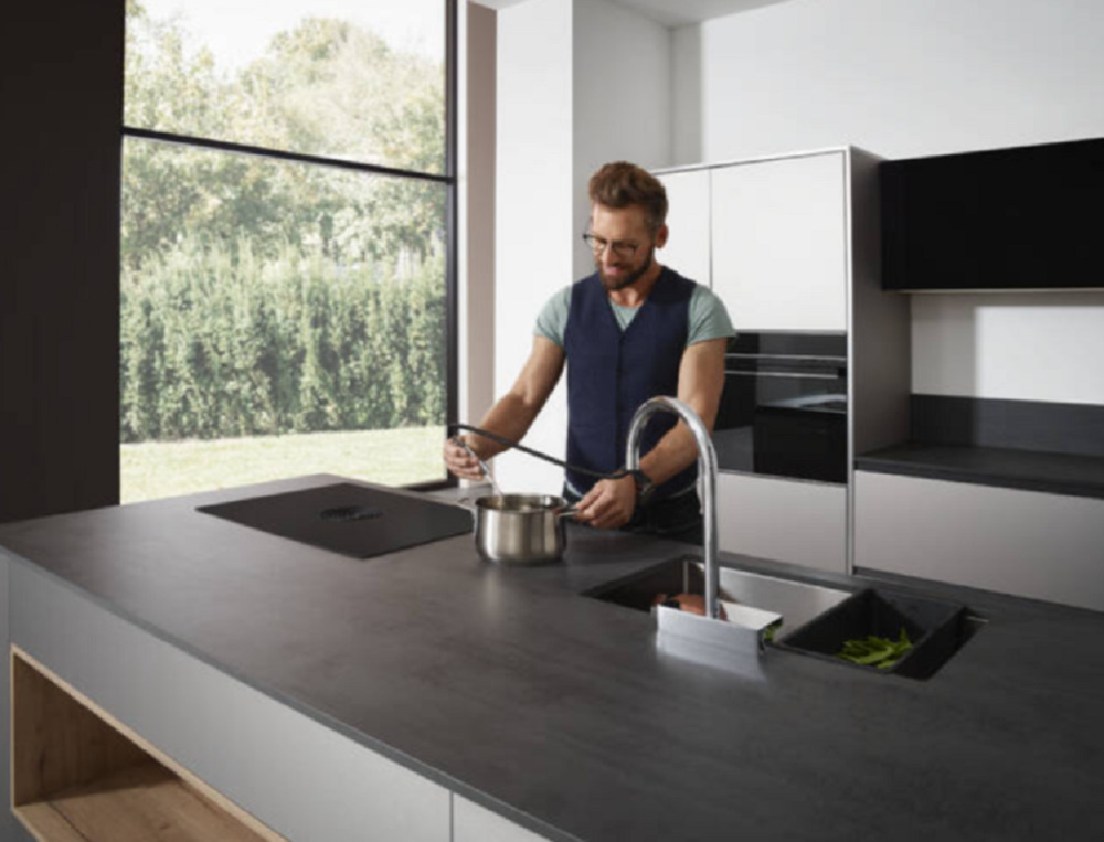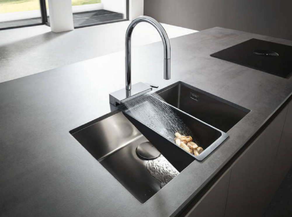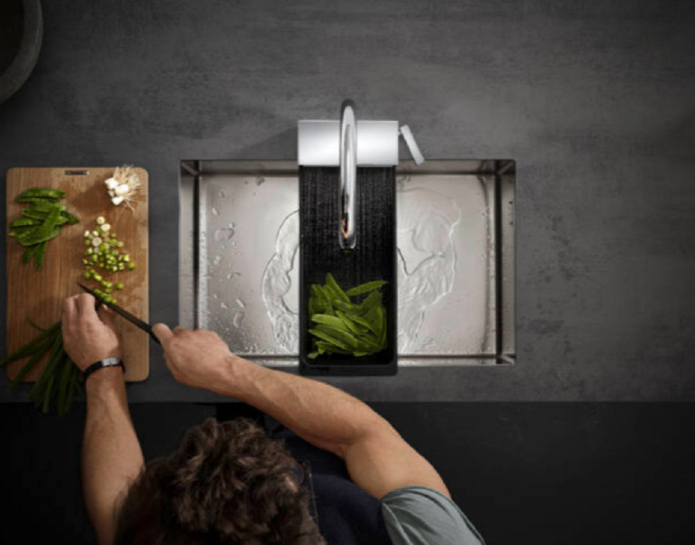 - состоит из: однорычажный кухонный смеситель, многофункциональный дуршлаг