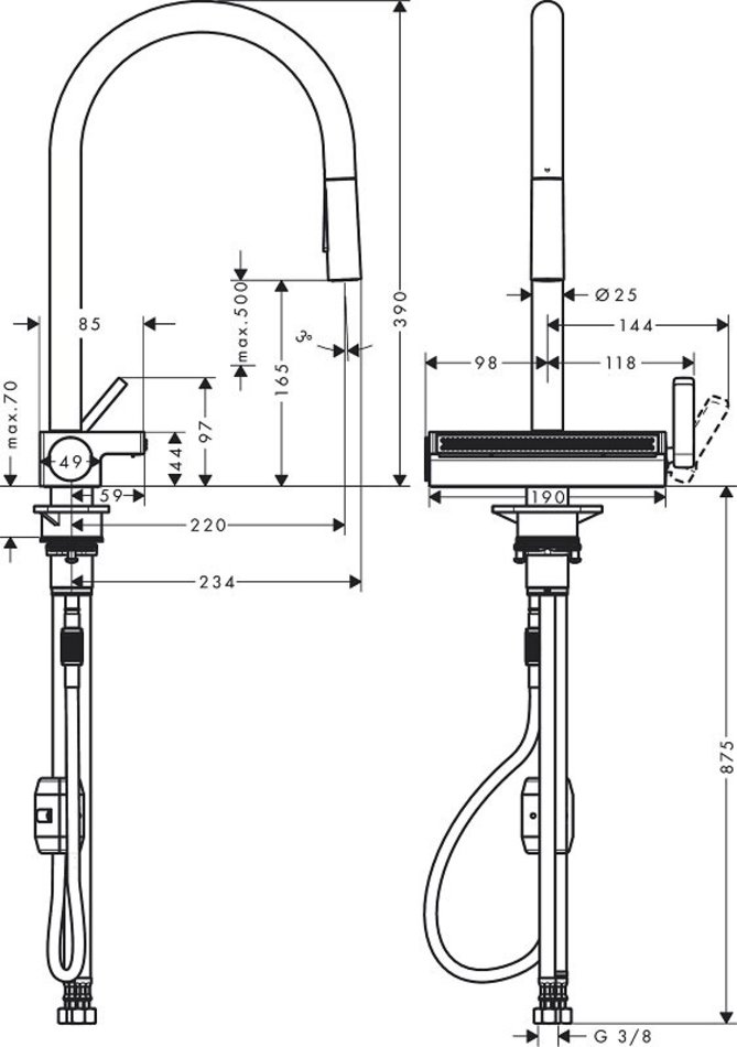 Смеситель Hansgrohe Aquno Select 73837000, для кухонной мойки, с вытяжным изливом, цвет хром