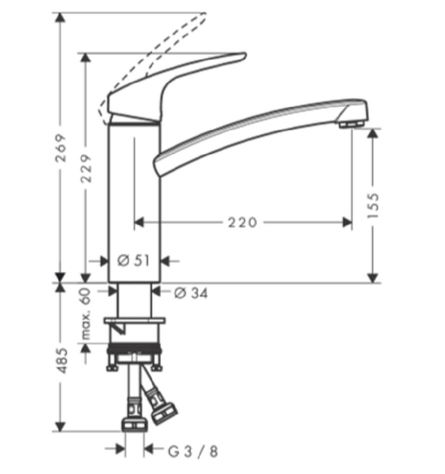 Смеситель Hansgrohe Focus M41, для кухонной мойки, цвет сталь, 31806800