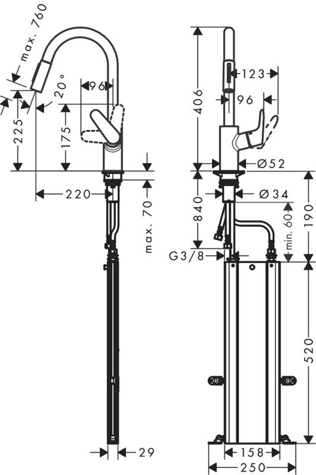 Смеситель Hansgrohe Focus, 73880000, для кухонной мойки, с вытяжным изливом, цвет хром