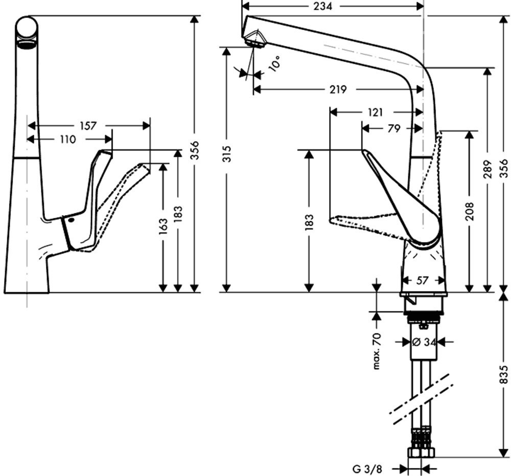 Смеситель Hansgrohe Metris 14822000 для кухонной мойки