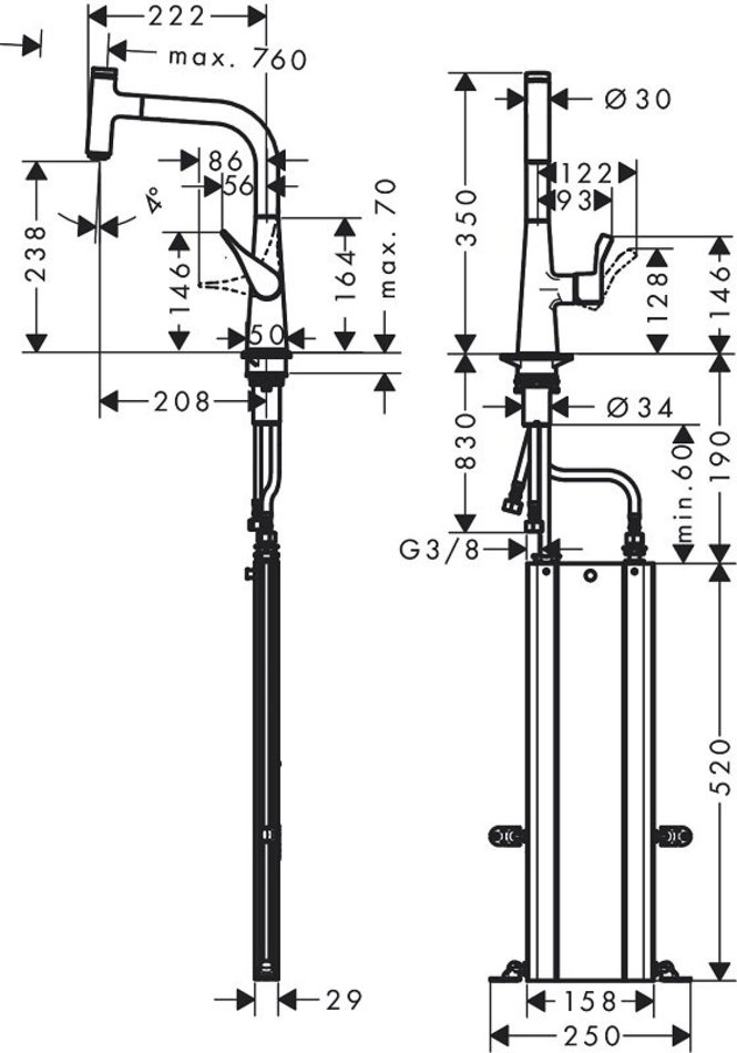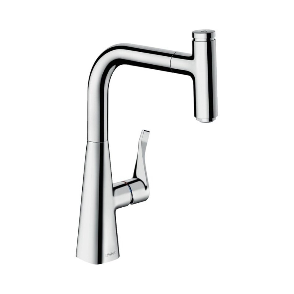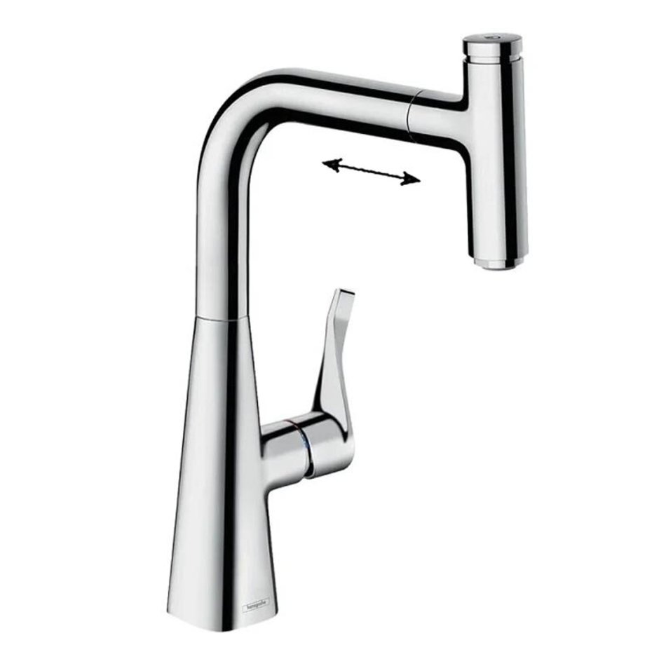 Смеситель Hansgrohe Metris Select 73802000, для кухонной мойки, с вытяжным изливом, цвет хром