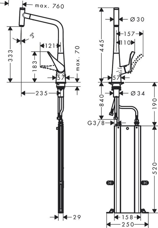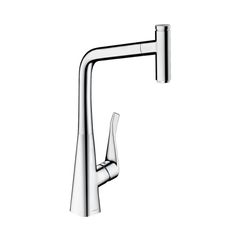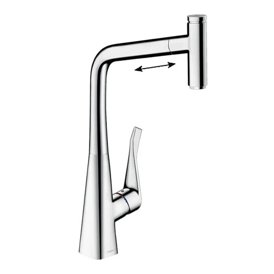 Смеситель Hansgrohe Metris Select 73803000, для кухонной мойки, с вытяжным изливом, цвет хром