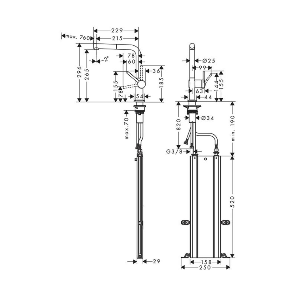 Смеситель Hansgrohe Talis 210 M54, для кухонной мойки, с вытяжным изливом, черный хром матовый, 72809340