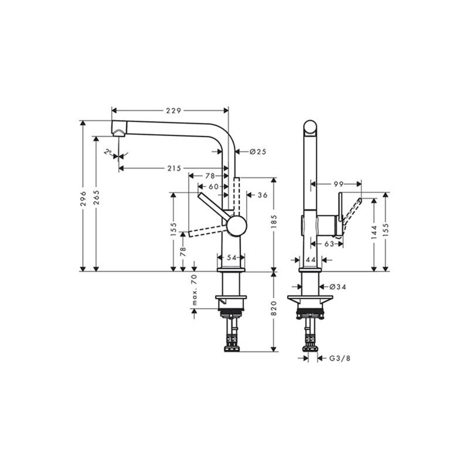 - угол поворота излива: регулировка на 4 уровня 60 °, 110 °, 150 ° или 360 °