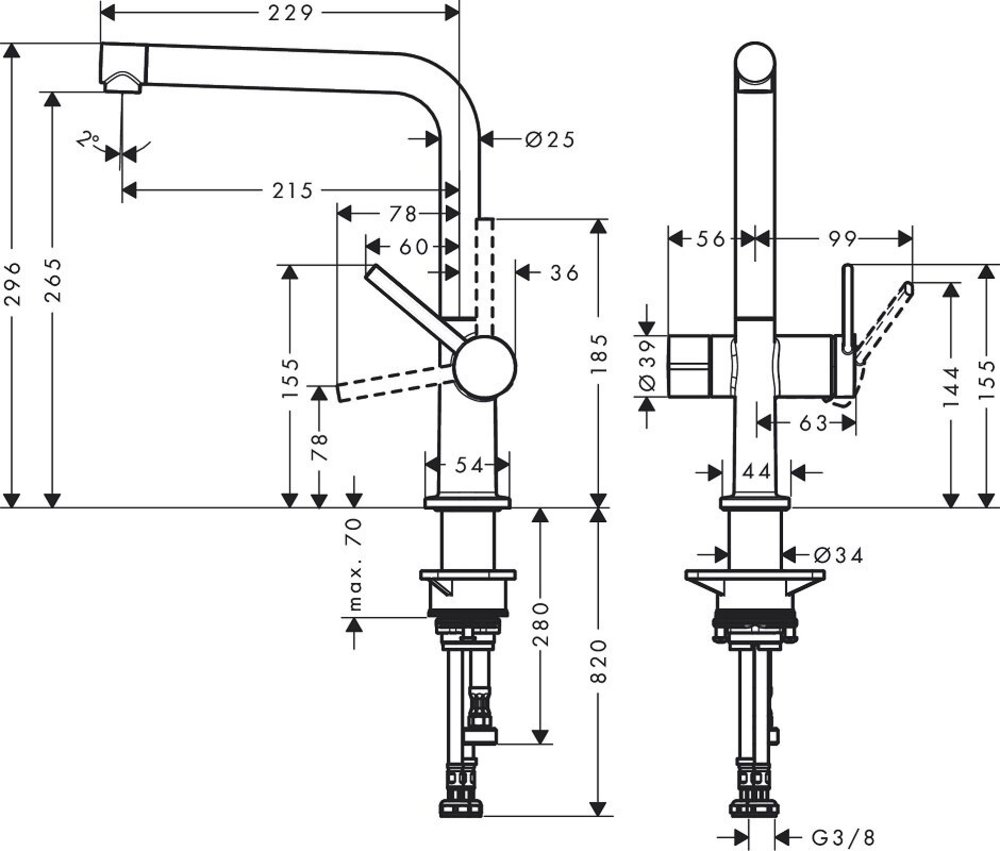 Смеситель Hansgrohe Talis 72827670, для кухонной мойки, с запорным вентилем, цвет черный матовый