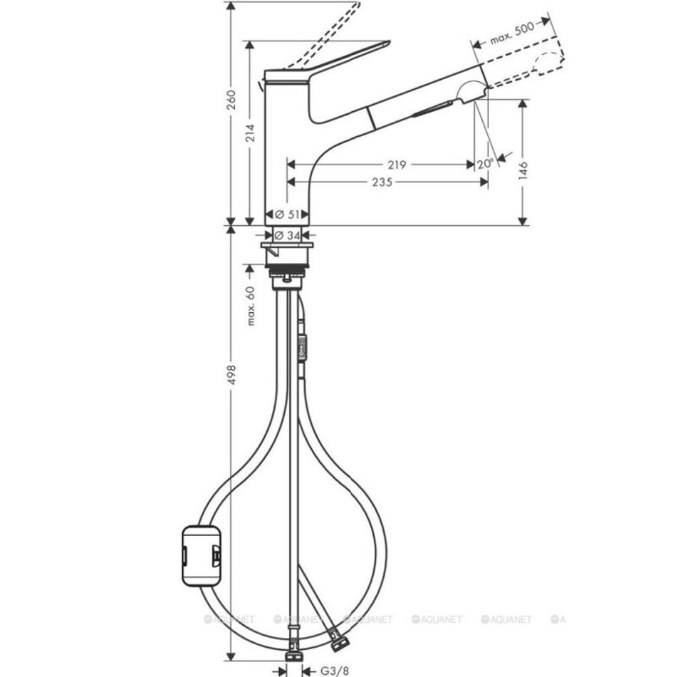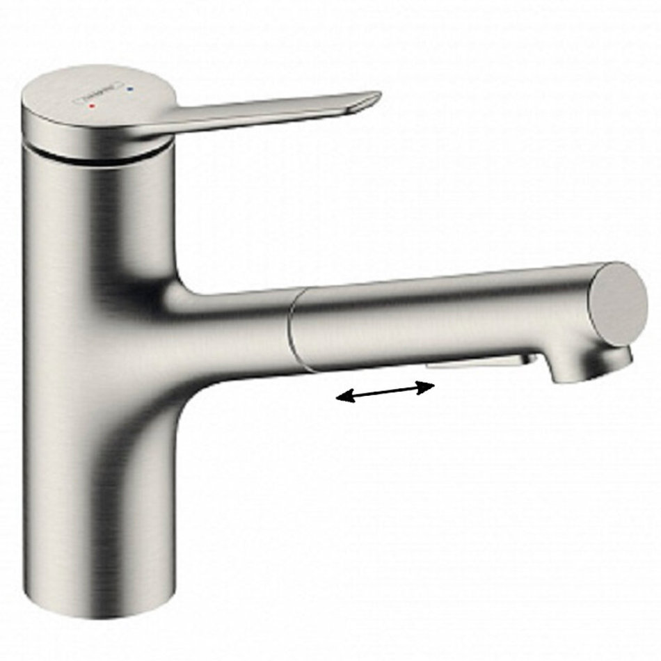 Смеситель Hansgrohe Zesis M33 для кухонной мойки, с выдвижным изливом, под сталь, 74800800