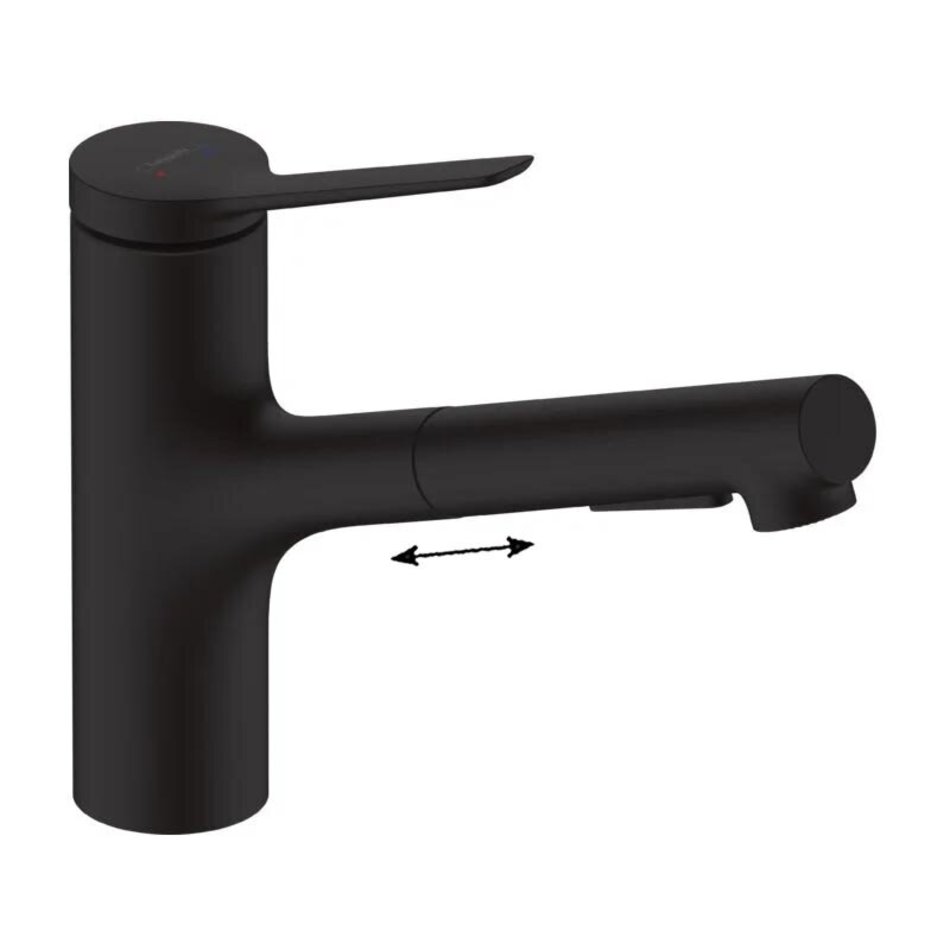 Смеситель Hansgrohe Zesis, lite 74803670, для кухонной мойки, с вытяжным изливом, цвет черный матовый