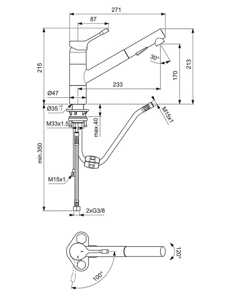 - Излив: поворотный, выдвижной