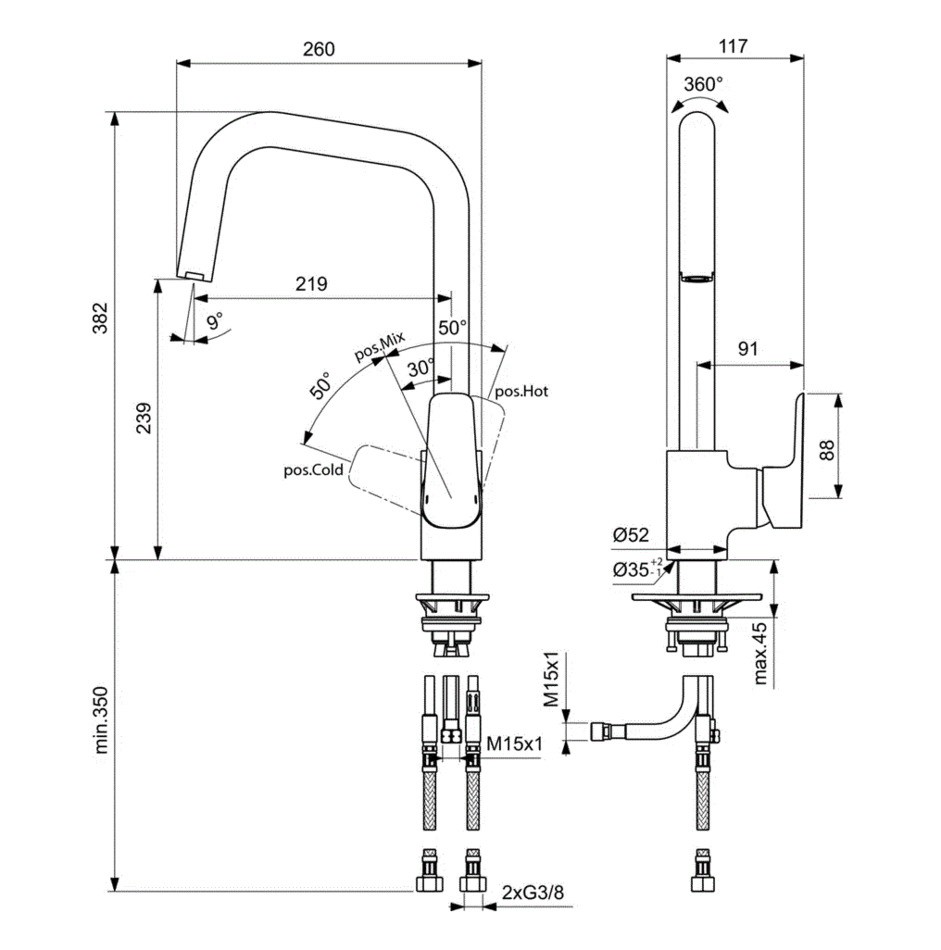 Смеситель Ideal Standard Ceraplan III для кухонной мойки с вытяжным изливом, хром, B0960AA