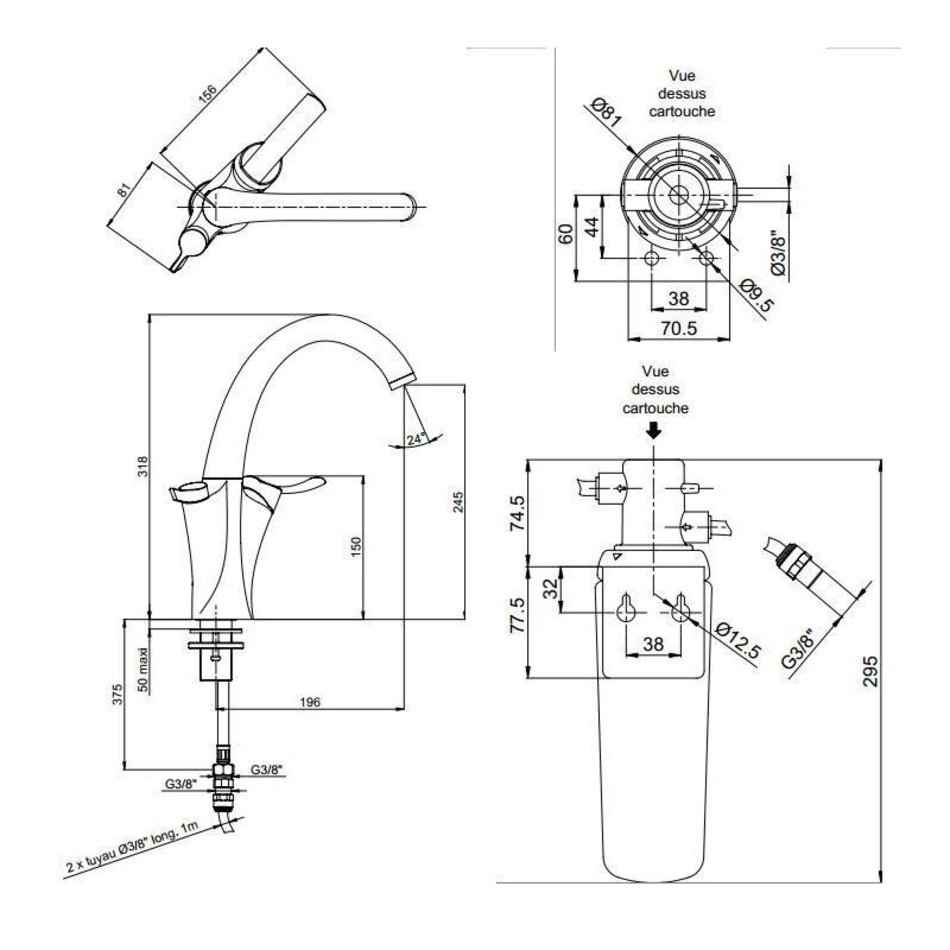 - Длина излива 196 мм
