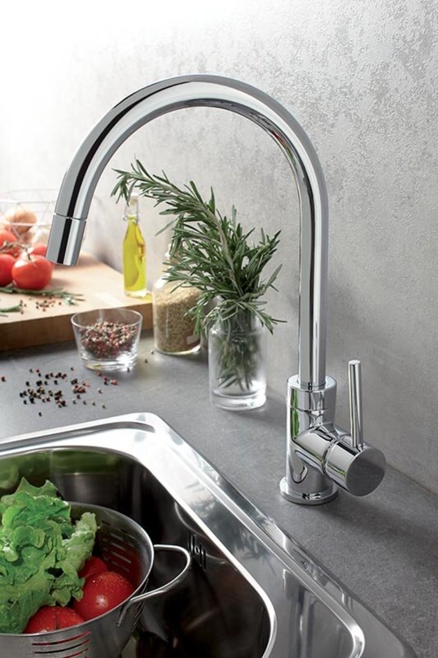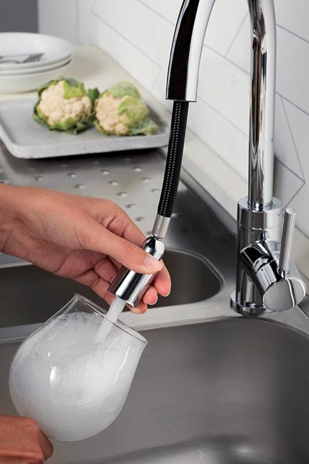 - Встроенный выдвижный излив-комфорт при очищении в труднодоступных местах и наполнении посуды любого размера