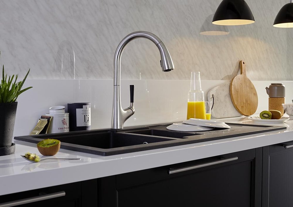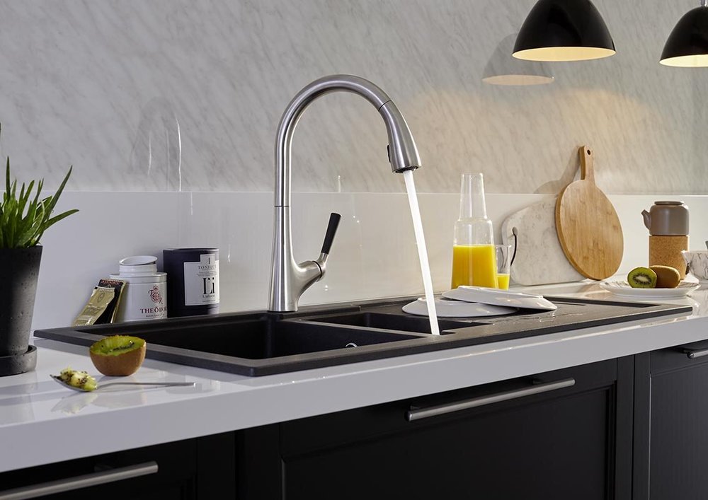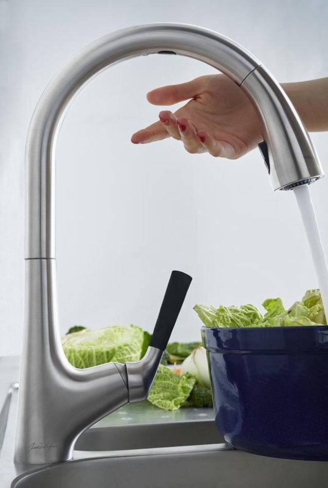 Технология ProMotion: Вытяжной излив, установленный на шарнире, обеспечивает легкость использования