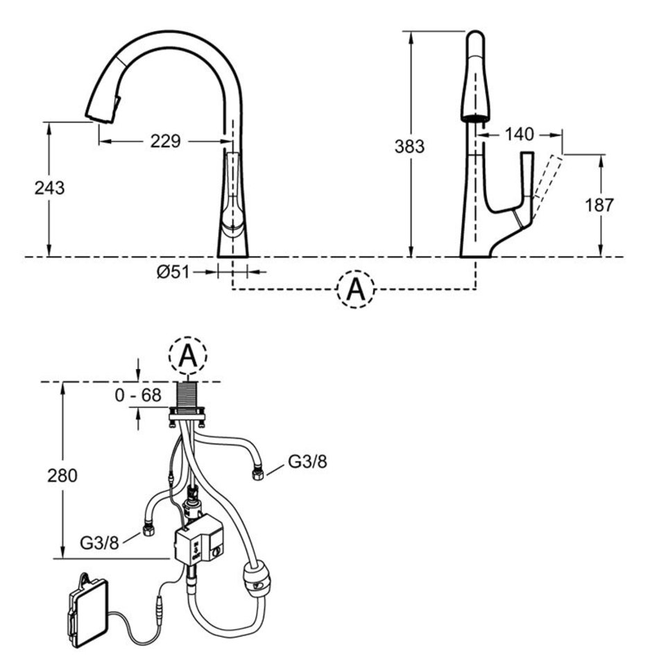 Смеситель Jacob Delafon Malleco E77748-VS, для кухонной мойки, сенсорный, с выдвижным изливом, матовый хром