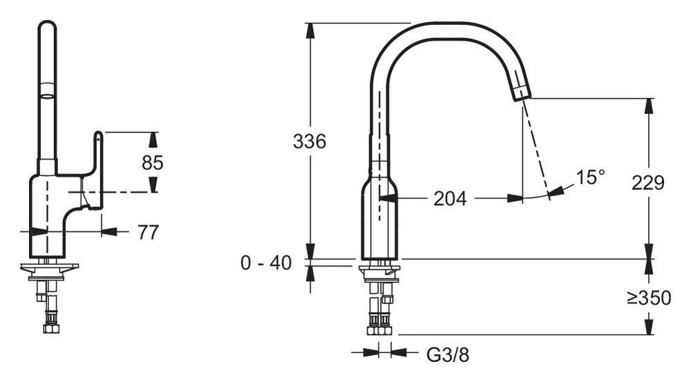 - Выступ излива: 20,4 см