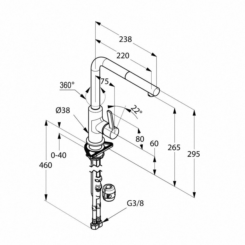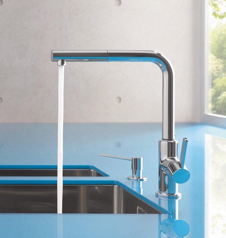 Смеситель Kludi L-Ine 408510575 для кухонной мойки, с выдвижным изливом, цвет хром