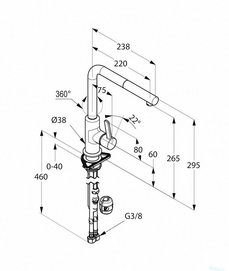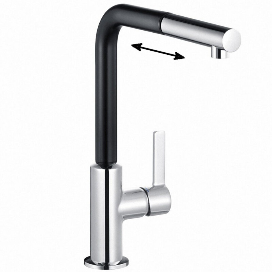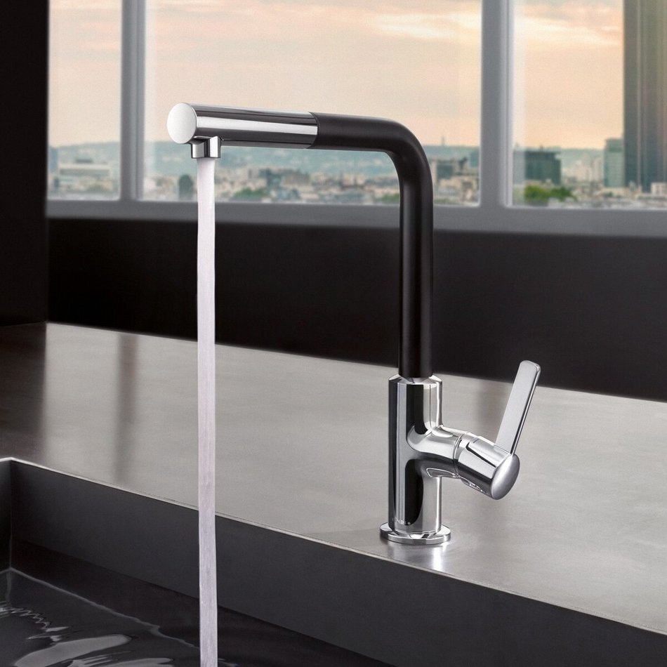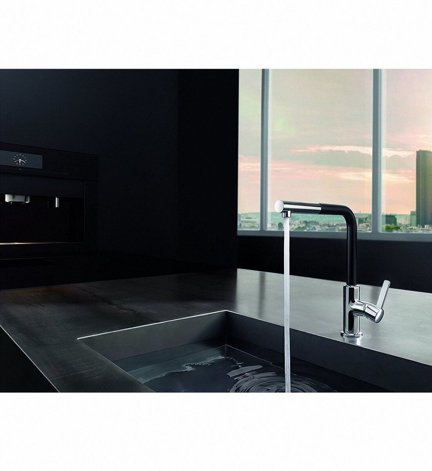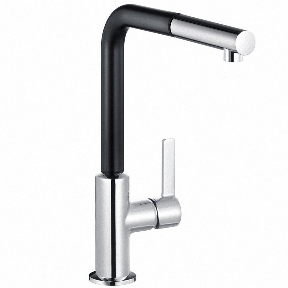 Смеситель Kludi L-Ine 408518775 для кухонной мойки, с выдвижным изливом, цвет хром-черный матовый